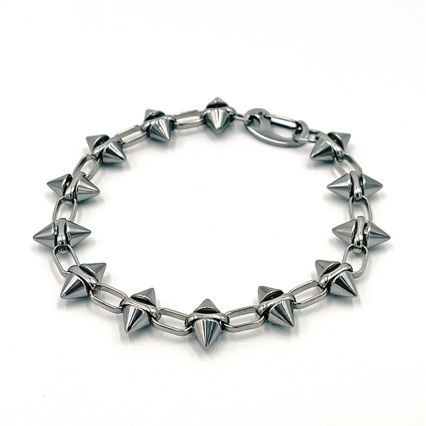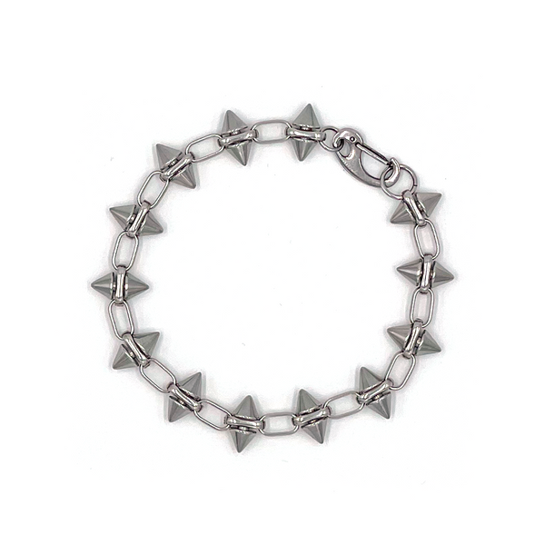 The Spiked bracelet offers a mix of edginess and simplicity. The dull spike pieces are safe to wear without fear of piercing the skin which makes great for a daily wear. Whether you're a subtle rebel or a full time punk. This piece is a great addition to your jewelry collection.