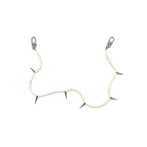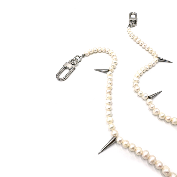 The Diamondback Wallet Chain combines the timeless elegance of freshwater pearls with the boldness of stainless steel spikes, creating a unique and sophisticated accessory. Perfectly paired with your favorite jeans or any outfit, this chain adds an edge to your style. Elevate your look with the Diamondback Wallet Chain, your new go-to for making a statement.