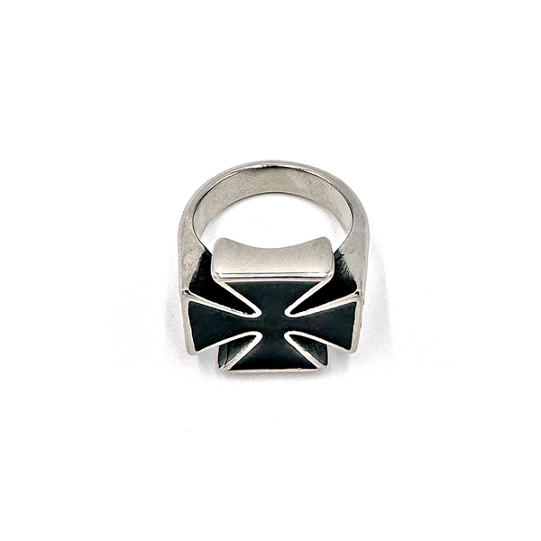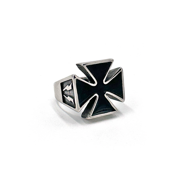 The Knights Templar presents a modern day design of the notorious cross used by the Knight Templars during the middle ages. This piece has a smooth feel with a black color finish within the cross on the top. The sides showcase an aged detailed look filling in the etched lightning bolts making for an eye catching feature. This ring is somewhat chunky so it serves as a great wear alone or grouped with other rings.