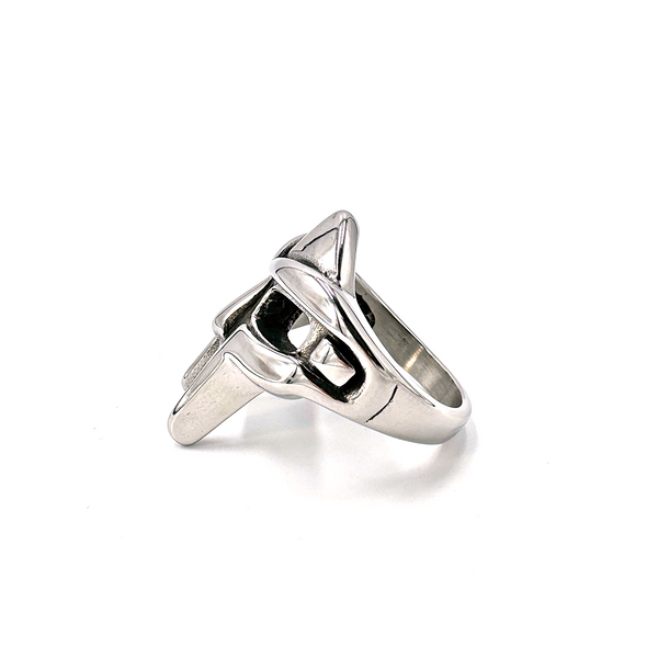 ALL CAPS! We invite you to pay homage to hip-hop legend in MF DOOM with our newest piece. We crafted a beautiful ring that is as tough as the famous mask worn by a one of a kind artist who's delivered some of our favorite sounds that we've heard. Using stainless steel to assure the highest quality, we guarantee this ring will bring you continuous joy with every wear from now to the many years to come.