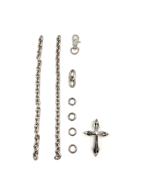 REMCTRL is a versatile, multi-wear accessory designed to function seamlessly as both a necklace and a keychain. Featuring multiple circular spring clasps and a removable cross, it allows for easy customization and multiple styling options. Crafted entirely from stainless steel, it is built for durability and long-lasting everyday wear.
