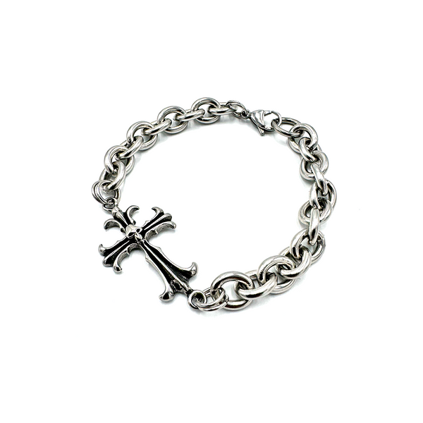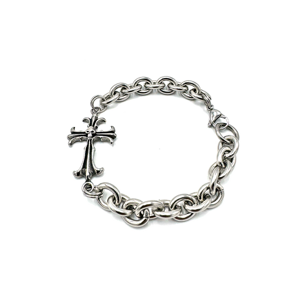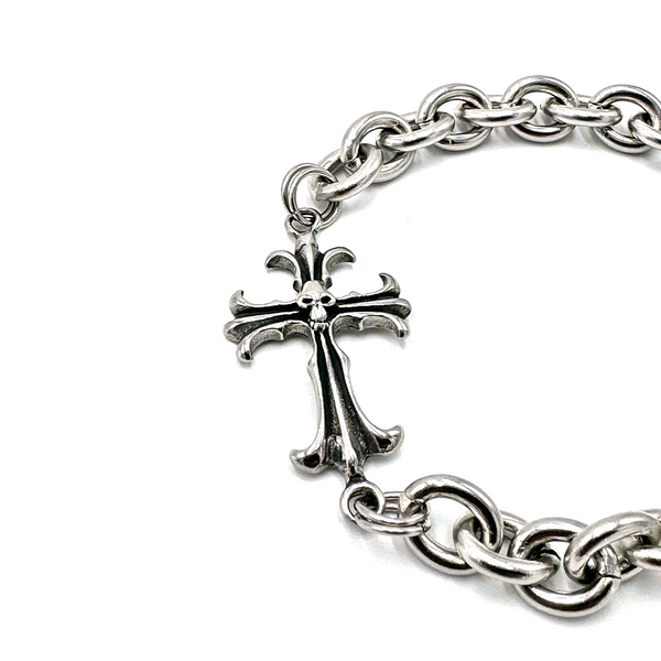 Each day offers us a chance to transform and renew ourselves, and this exquisite piece serves as a reminder to embrace inevitable change and harness it to our advantage. This bracelet features a gothic-style cross centered with a small skull, meticulously crafted from high-quality stainless steel. The design is completed with a sturdy 10mm anchor chain, making this bracelet a sophisticated and durable accessory.