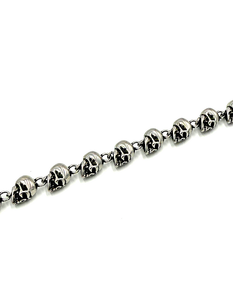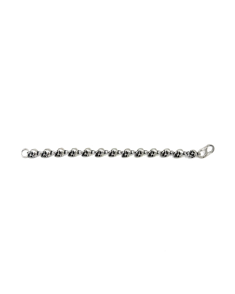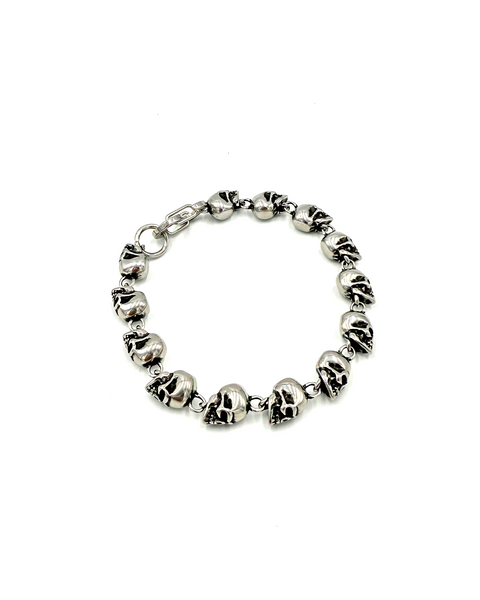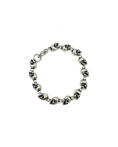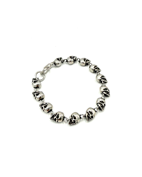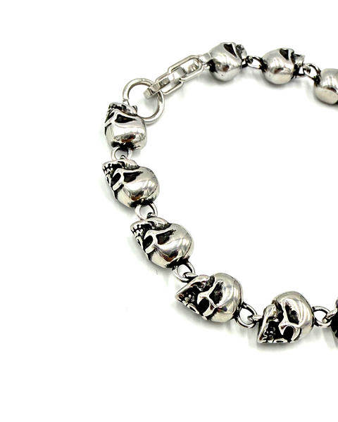 Our Totem Skull bracelet brings another addition to our collection of skull pieces. Stacked to perfection, this bracelet features a detailed design for each skull to bring you a unique look that serves as a perfect layer for your daily jewelry wear. Crafted with high polish stainless steel, you can wear this piece at all times without worry of skin turning green or metal corrosion.