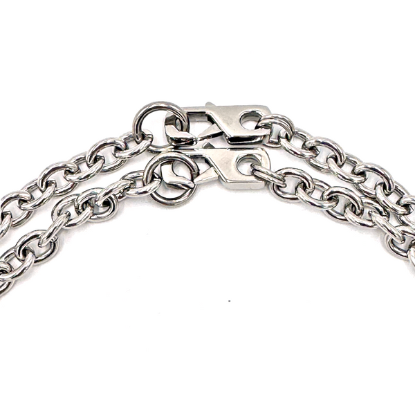 The Vultures set is a striking, multi-layered duo crafted with rare silver-toned pearls on one piece and a 7mm stainless steel cable chain on the other. This captivating combination is designed to elevate your presence, giving your aura an instant boost. As one of the most eye-catching necklaces ever created, it’s a statement piece that commands attention in every room you enter.